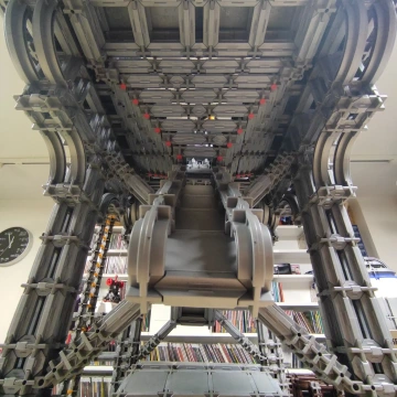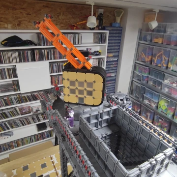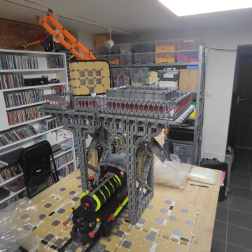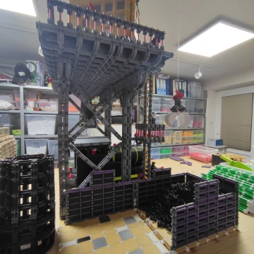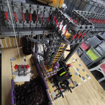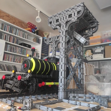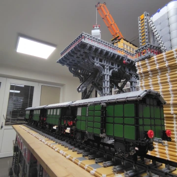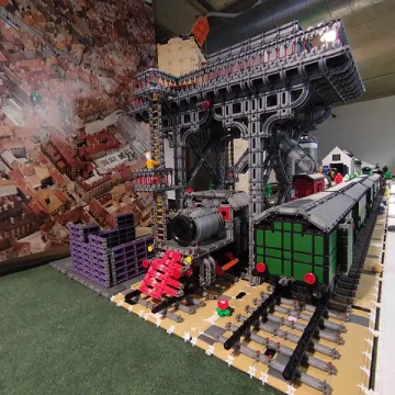 3. Zauhlovací zařízení příhradové s funkčním drapákovým jeřábem (10.739 dílů) doplňuje žebříkový přístup s mezipatrem a prostorná sýpka na uhlí v úrovni terénu. Technicky nejdetailnější model do diorama "Století páry", designovaný podle skutečné předlohy z druhé poloviny 19. století. Jednotlivé subtilní příhradové konstrukce vynášejí pouze kovové hřídele zasunuté v otvorech konstrukčních spojek. Povedlo se vytvořit také sýpkový prostor pyramidového tvaru s dvojcestnou skluzavkou pro zauhlování dvou tendrů vlakových souprav souběžně.