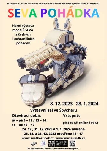 Návštěvníci expozičního prostoru Městského muzea ve Dvoře Králové nad Labem se mohou již od 08. prosince 2023 těšit na epochální expozičně - herní výstavu modelů vlastní ateliérové tvorby projektu Svět kostiček® s tématikou ikon české i zahraniční pohádkové a filmové produkce pod názvem "SEVA POHÁDKA".